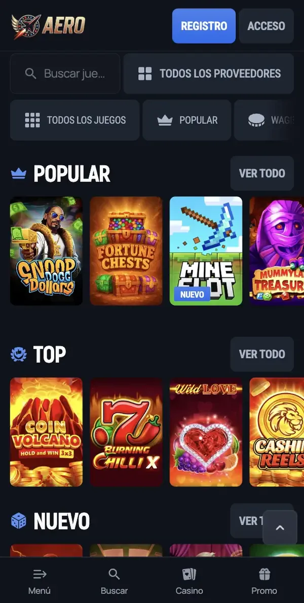 Ahora mismo no ofrecemos una aplicación nativa descargable, así que nuestra opción móvil oficial es el sitio web de Aerobet en tu navegador. Esto es importante por seguridad: si encuentras una “app” fuera de nuestro sitio, puede que no sea auténtica. Para entrar en tu cuenta, usa el inicio de sesión de Aerobet desde el menú de nuestra página de inicio y mantén tu dispositivo actualizado. En Aerobet Casino, puedes explorar juegos por categoría, proveedor o búsqueda, y luego abrir títulos en modo horizontal a pantalla completa para controles más claros.